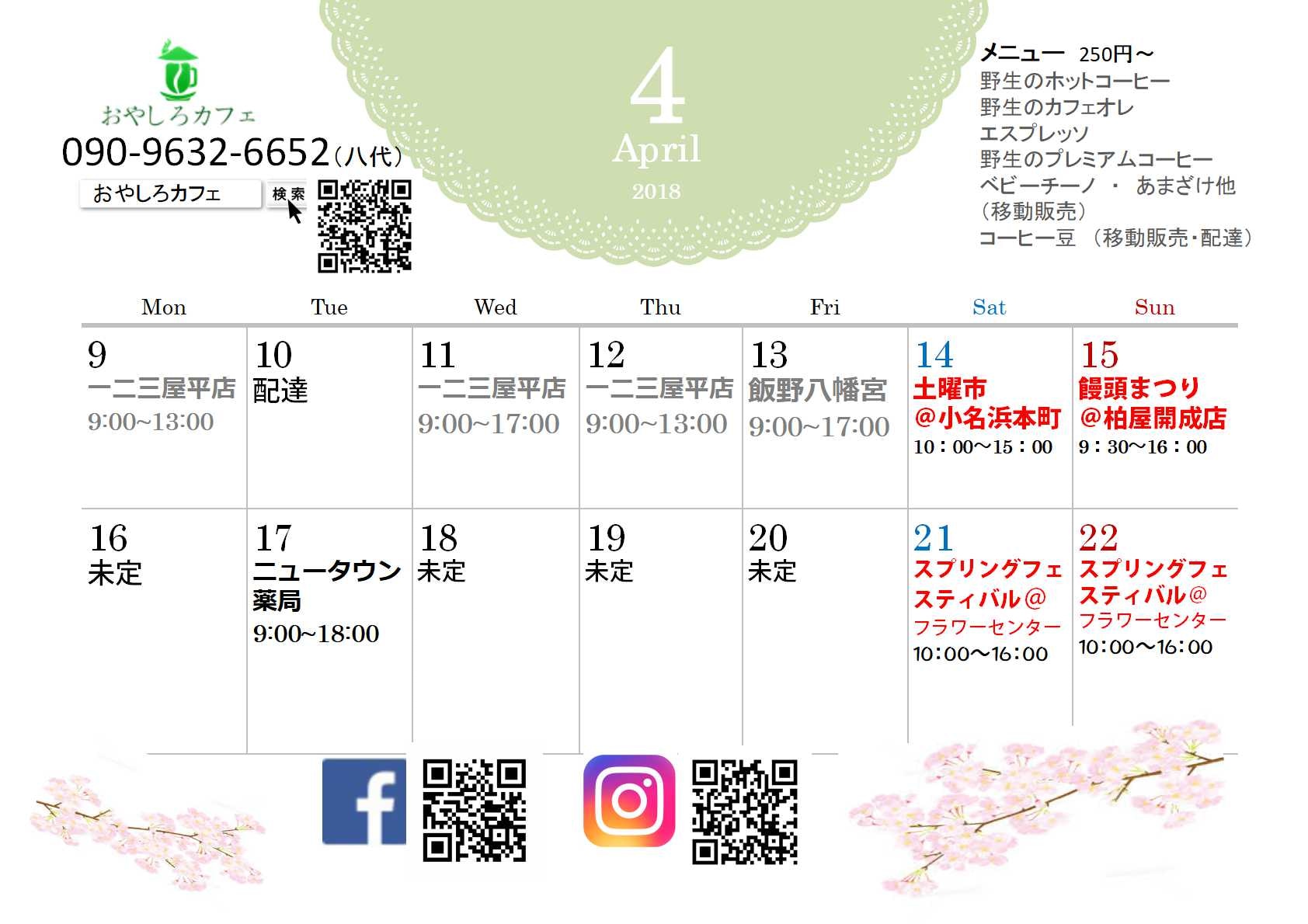 4月も少しずつ | おやしろカフェ 野生のコーヒー コーヒー豆通販 coffee 飲み物