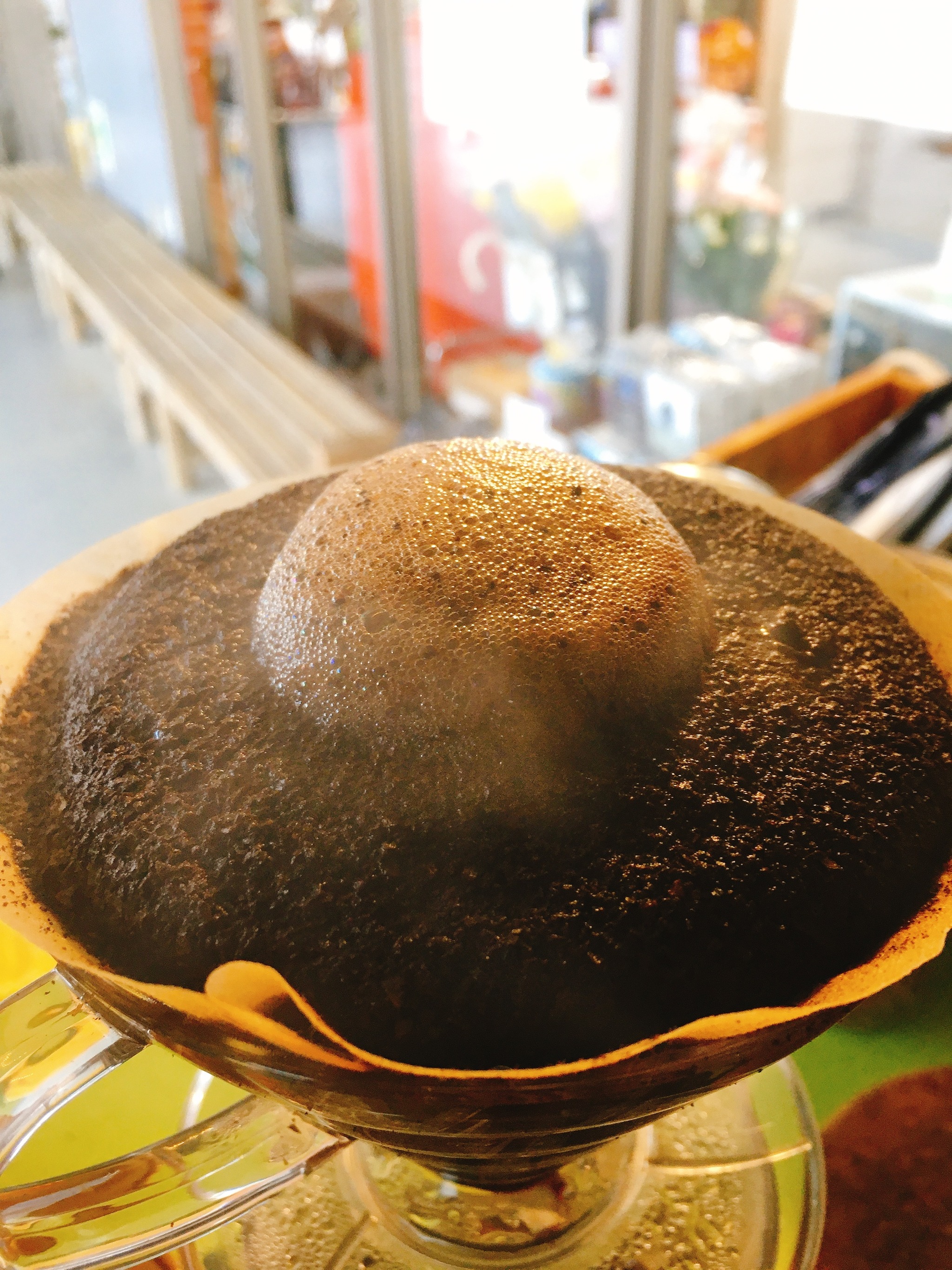 おやしろカフェも野生のコーヒーを淹れる時は、蒸らした後は、少しずつお湯を注ぎます
